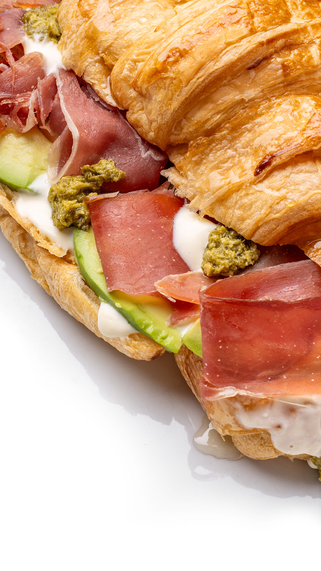 Relleno de jamón serrano, queso crema, miel de agave, aguacate y notas de pesto genovés.