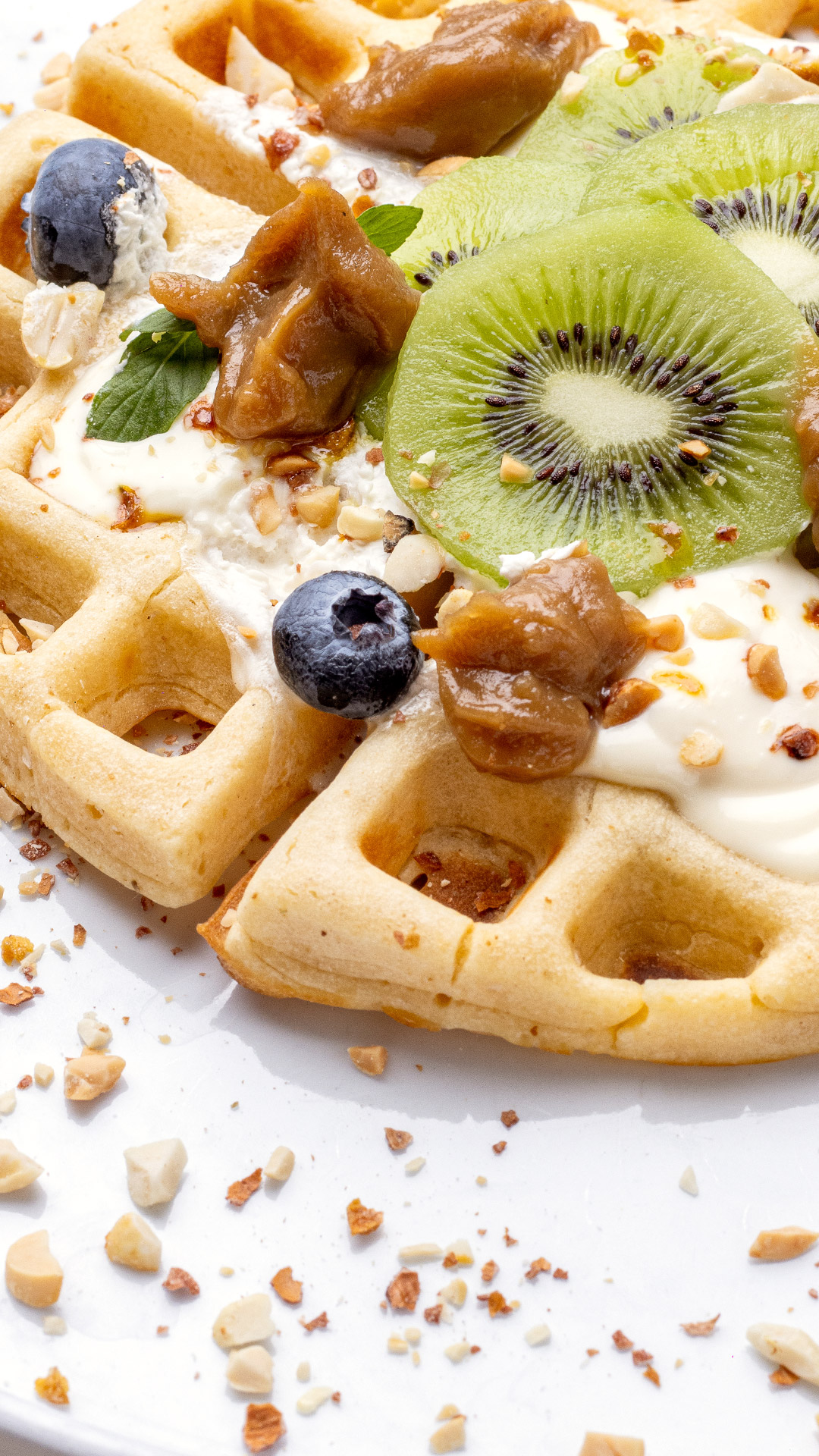 Waffle kiwi y avellanas